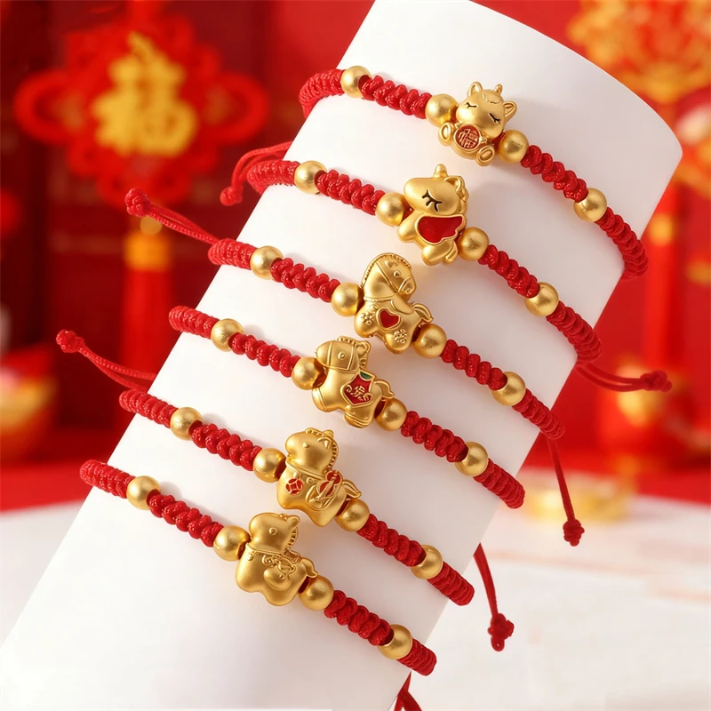 2026 New Year Zodiac Horse Lucky Braided Rope Bracelet Red Thread String Adjustable Bracelets for Womern Men Amulet Jewelry Gift