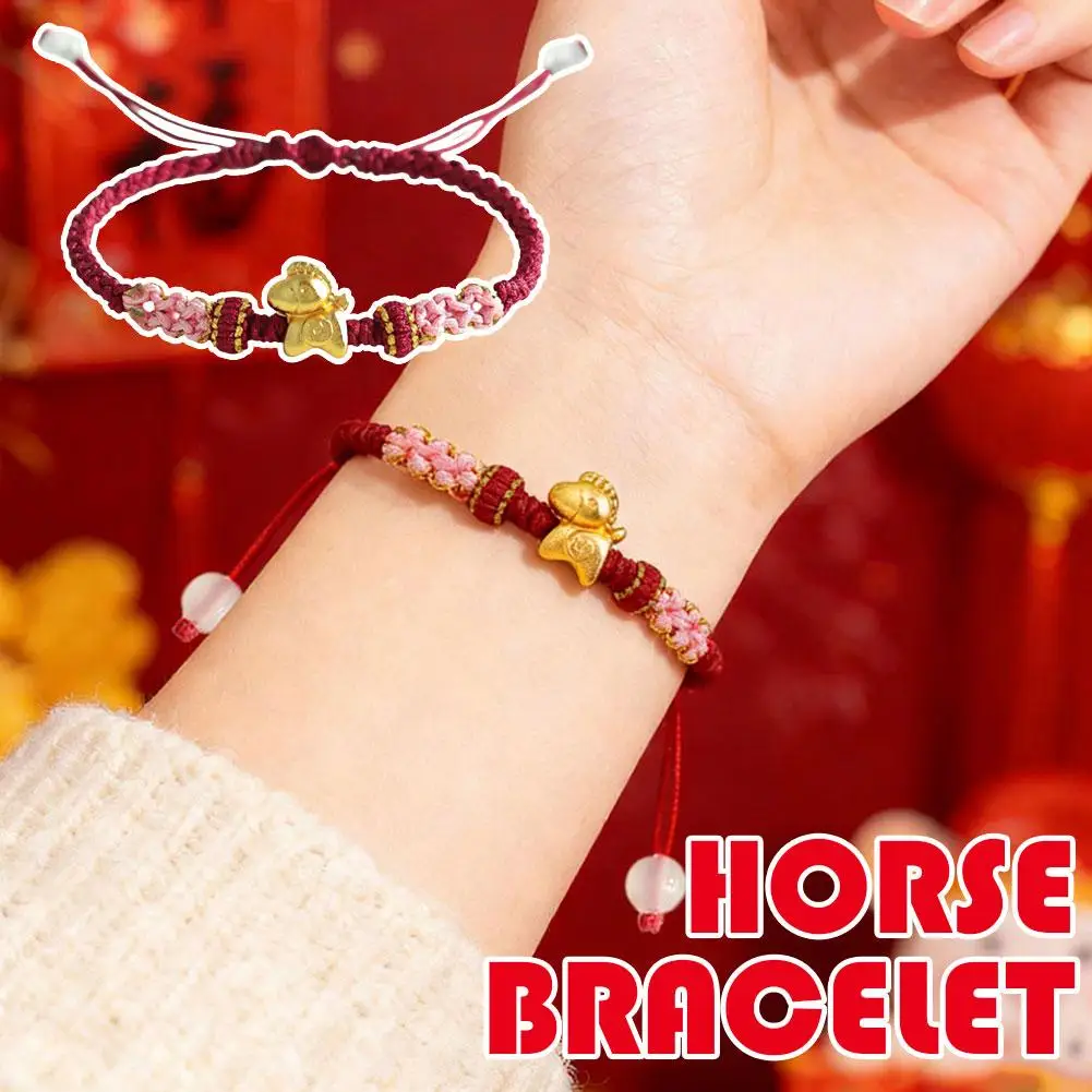 2026 Year of the Horse Guardian Buddha Bracelet Knitted Red String Lucky Hand Rope for Zodiac Protection