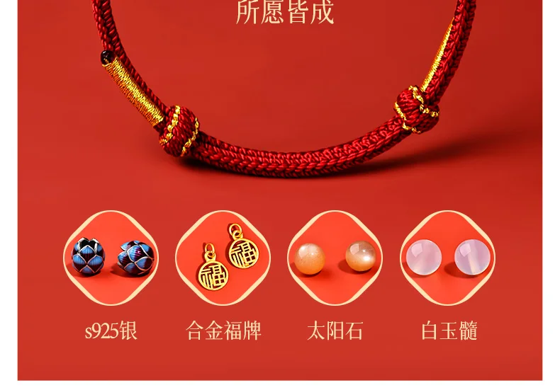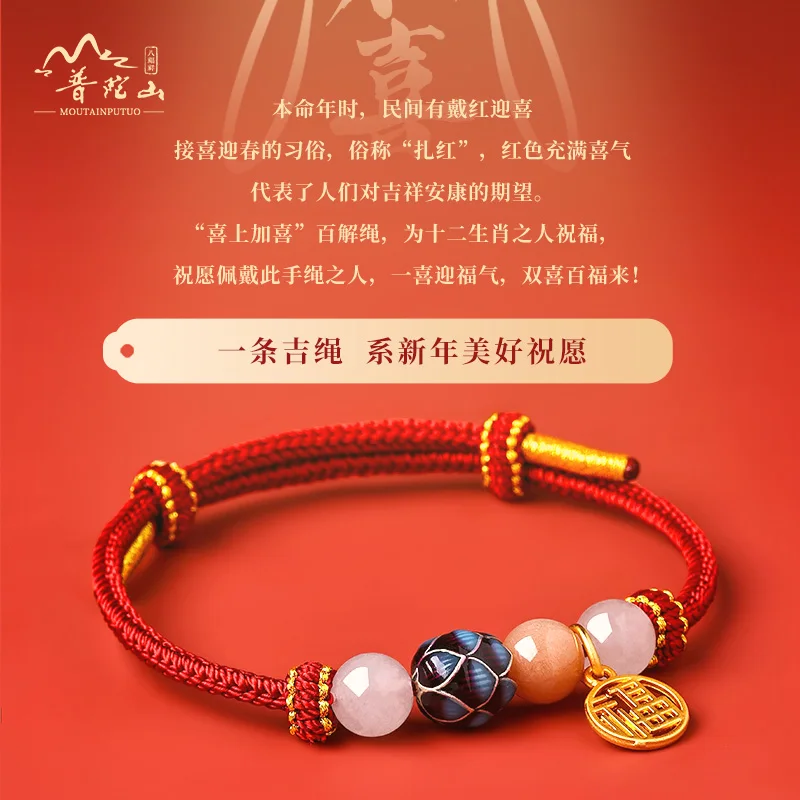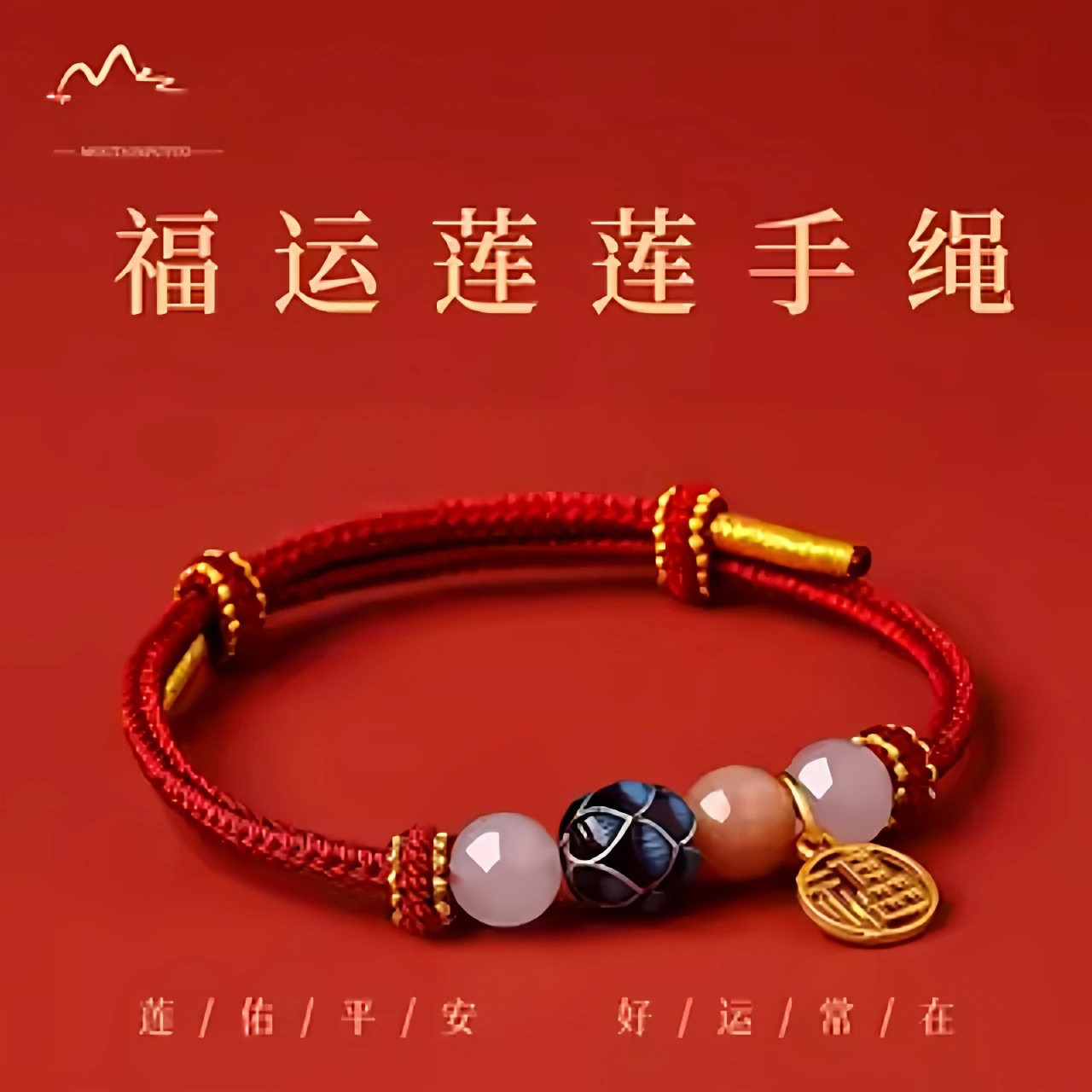 2026 Year of the Horse New Design Good Fortune Lotus Red String Lucky Talisman Holiday Gift Men Women