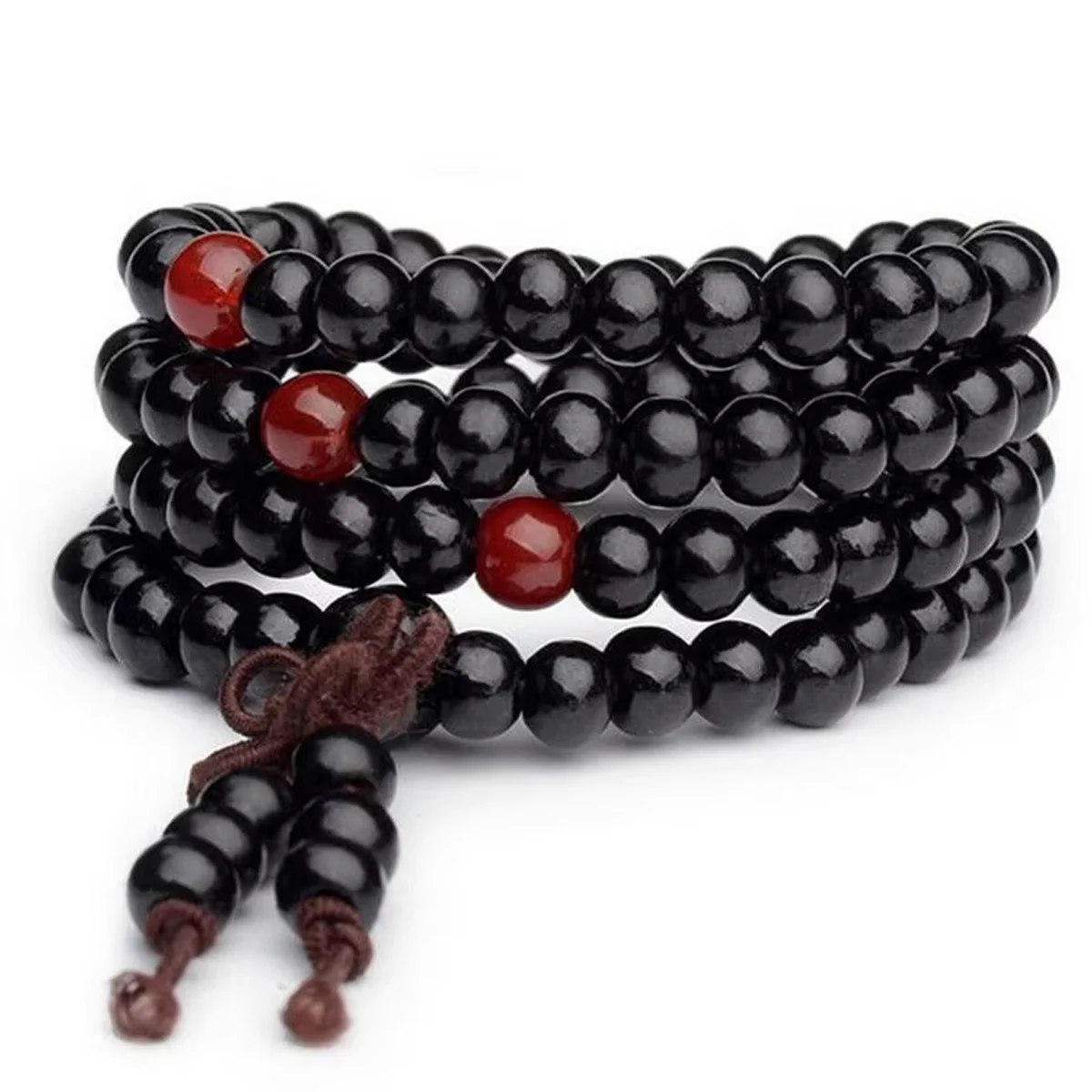 Name: 8 mm Buddhist Natural Sandalwood Buddha Statue Meditation Wooden Bead Bracelet for Men and Women with 108 Beads and Charm