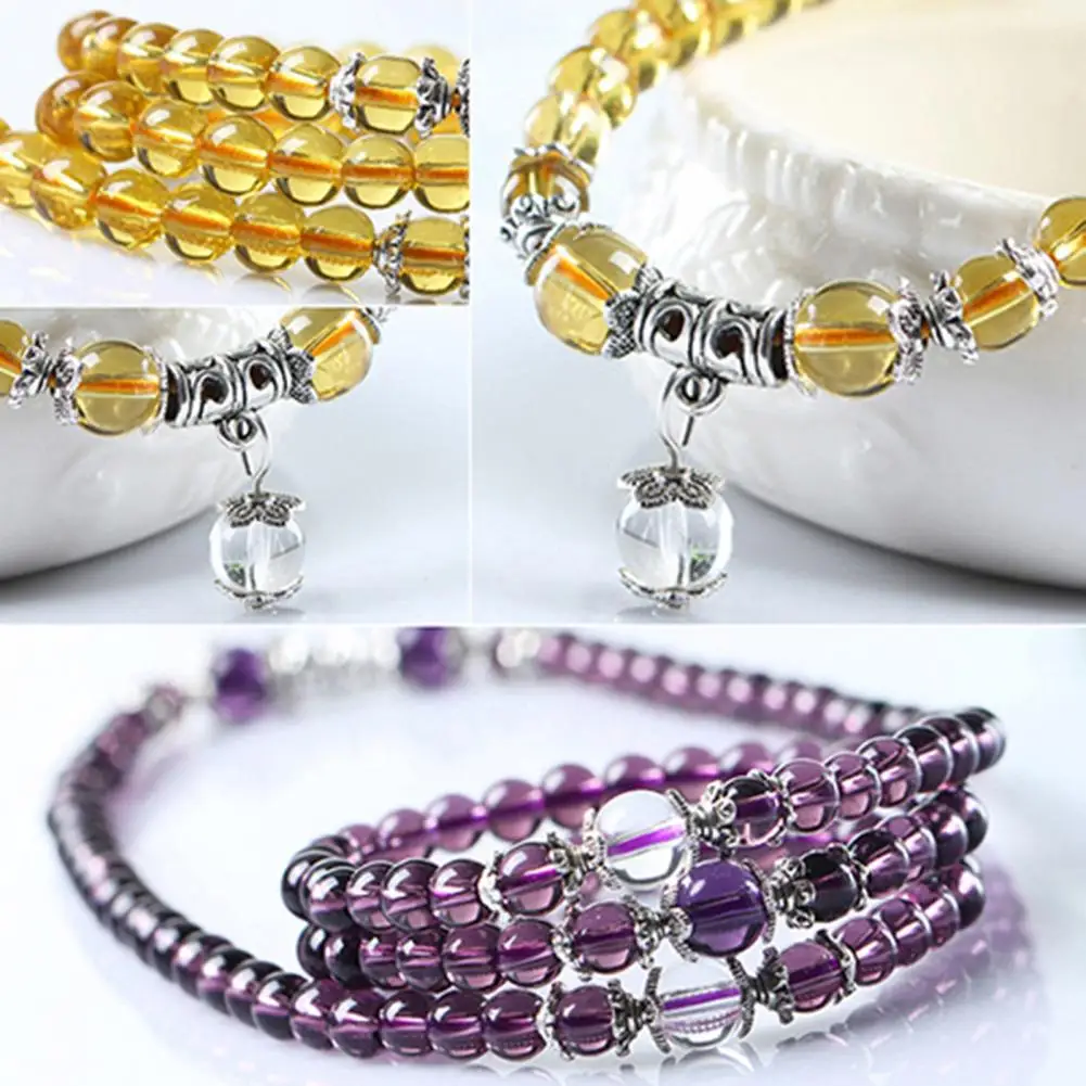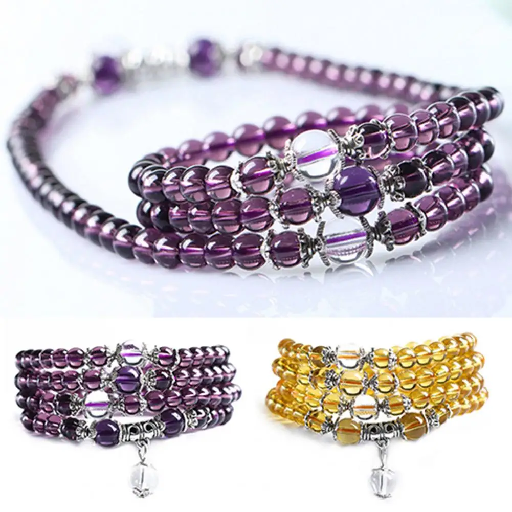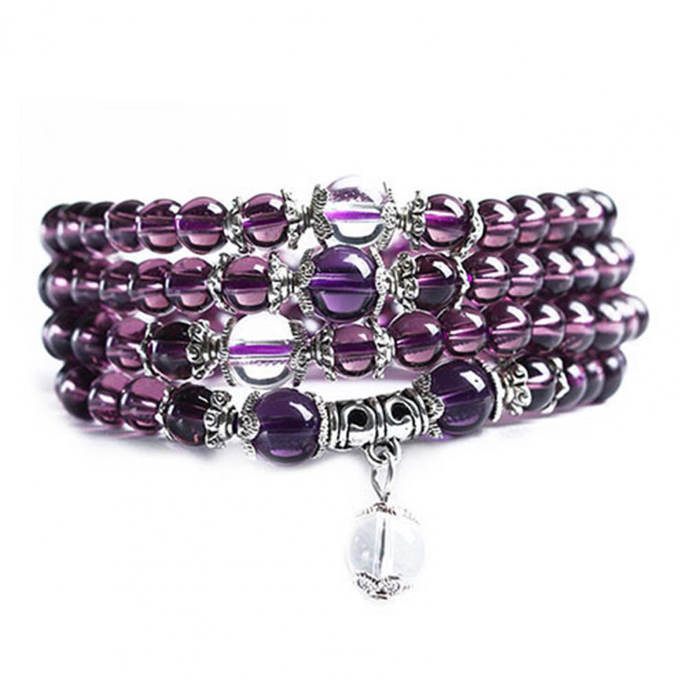Ethnic Style Women’s 6mm Crystal Stone Buddhist Amethyst 108 Prayer Beads Mala Bracelet Necklace New for Women